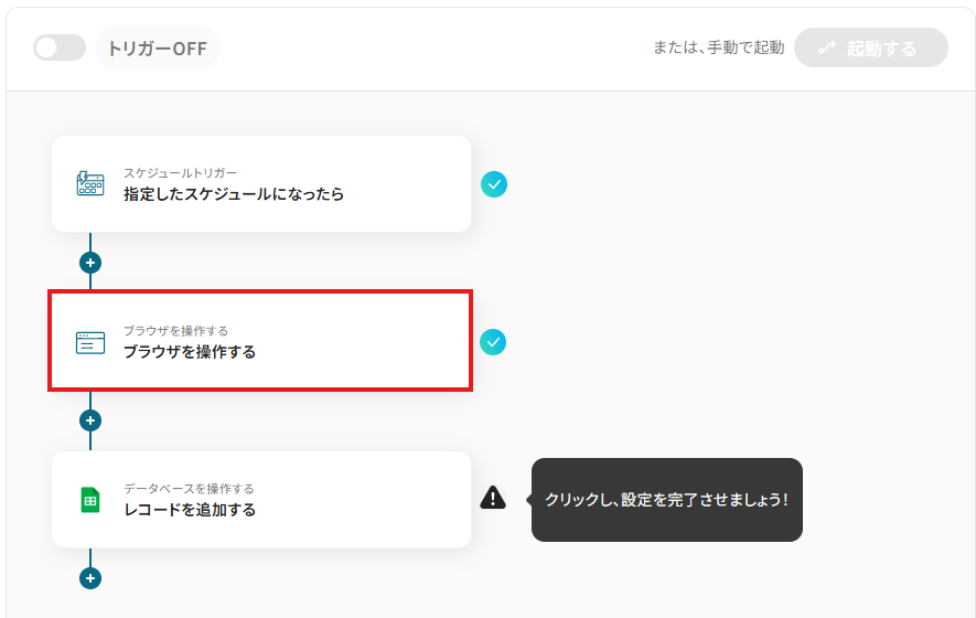 既に、簡単な操作内容が設定されていますが、一緒に変更してスクレイピングの自動化を進めていきましょう!
