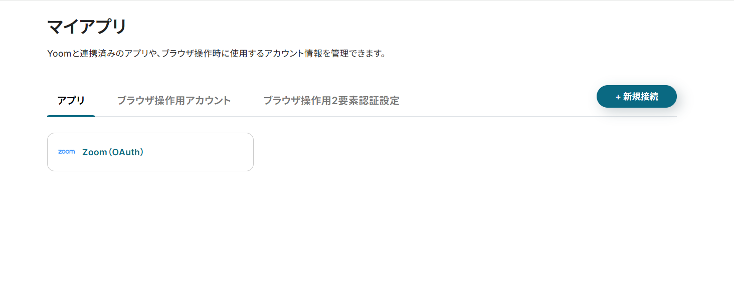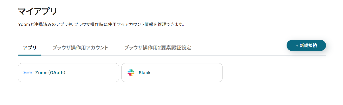 先ずは、ZoomアカウントとSlackアカウントを「マイアプリ」に登録しましょう。
