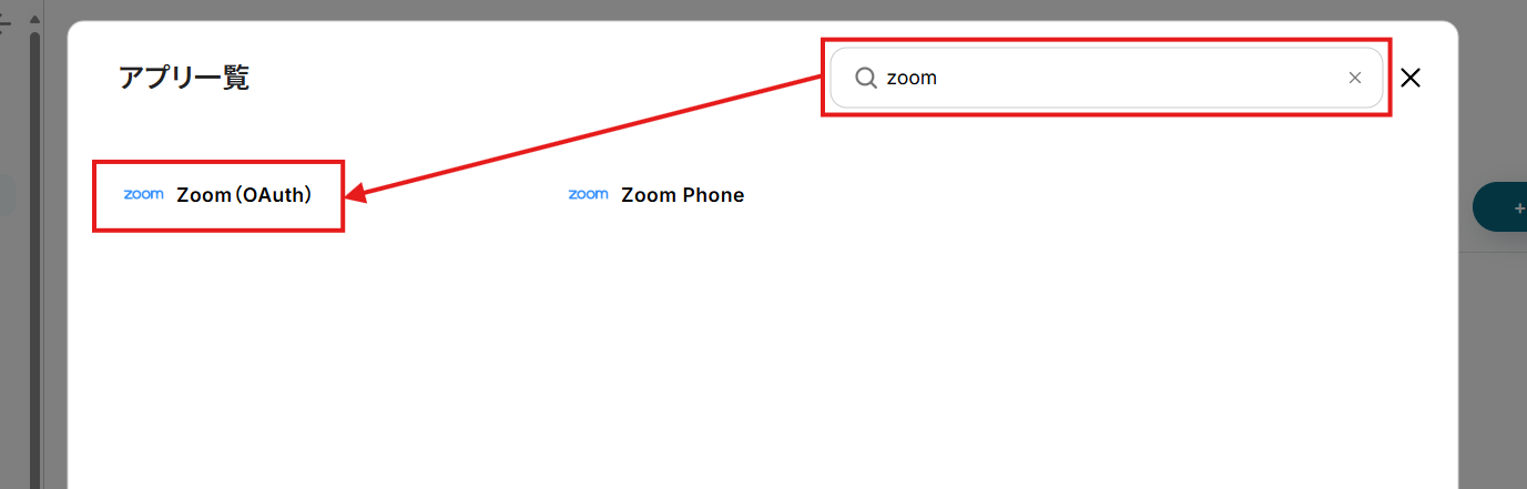 - アプリ一覧画面が表示されたら、右上の検索バーでアプリ名(ここではZoom)を検索して選択。