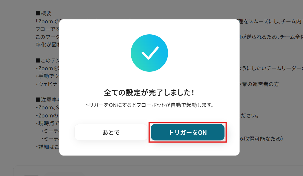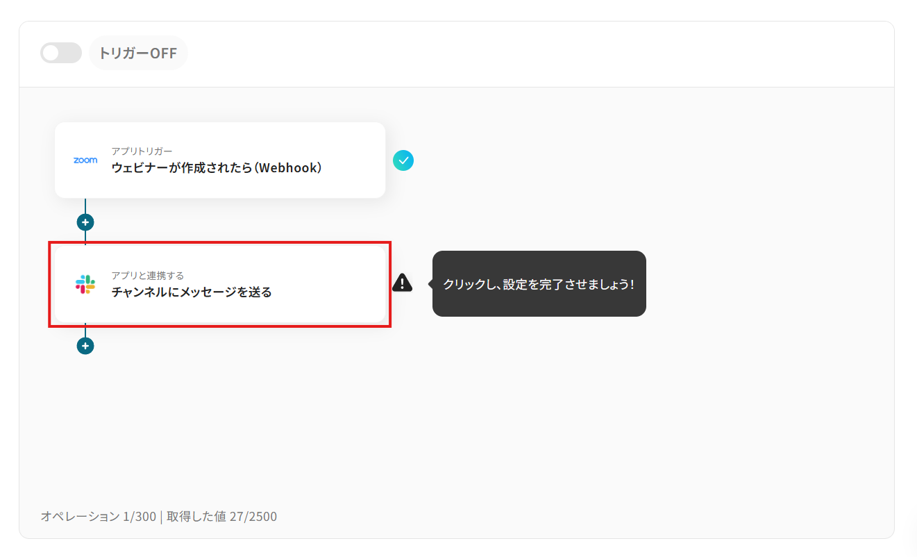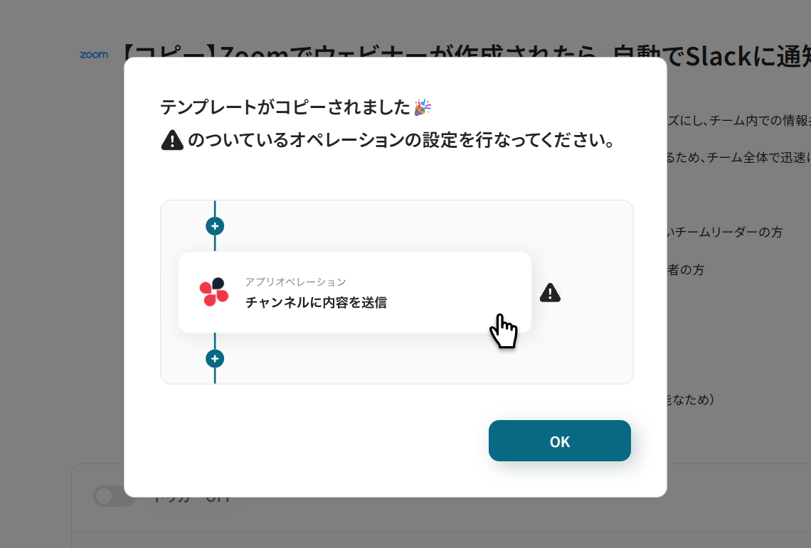 このワークフローを活用すれば、Zoomでウェビナーが作成されると自動的にSlackに通知が送られるため、チーム全体で迅速に情報を共有でき、業務の効率化が図れます。