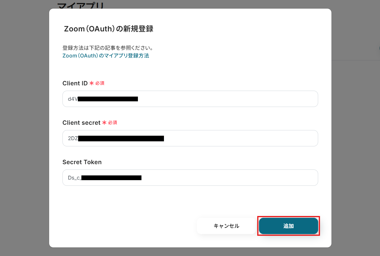 - 「Client ID」「Client secret」「Secret Token」をZoomから取得して設定してください。