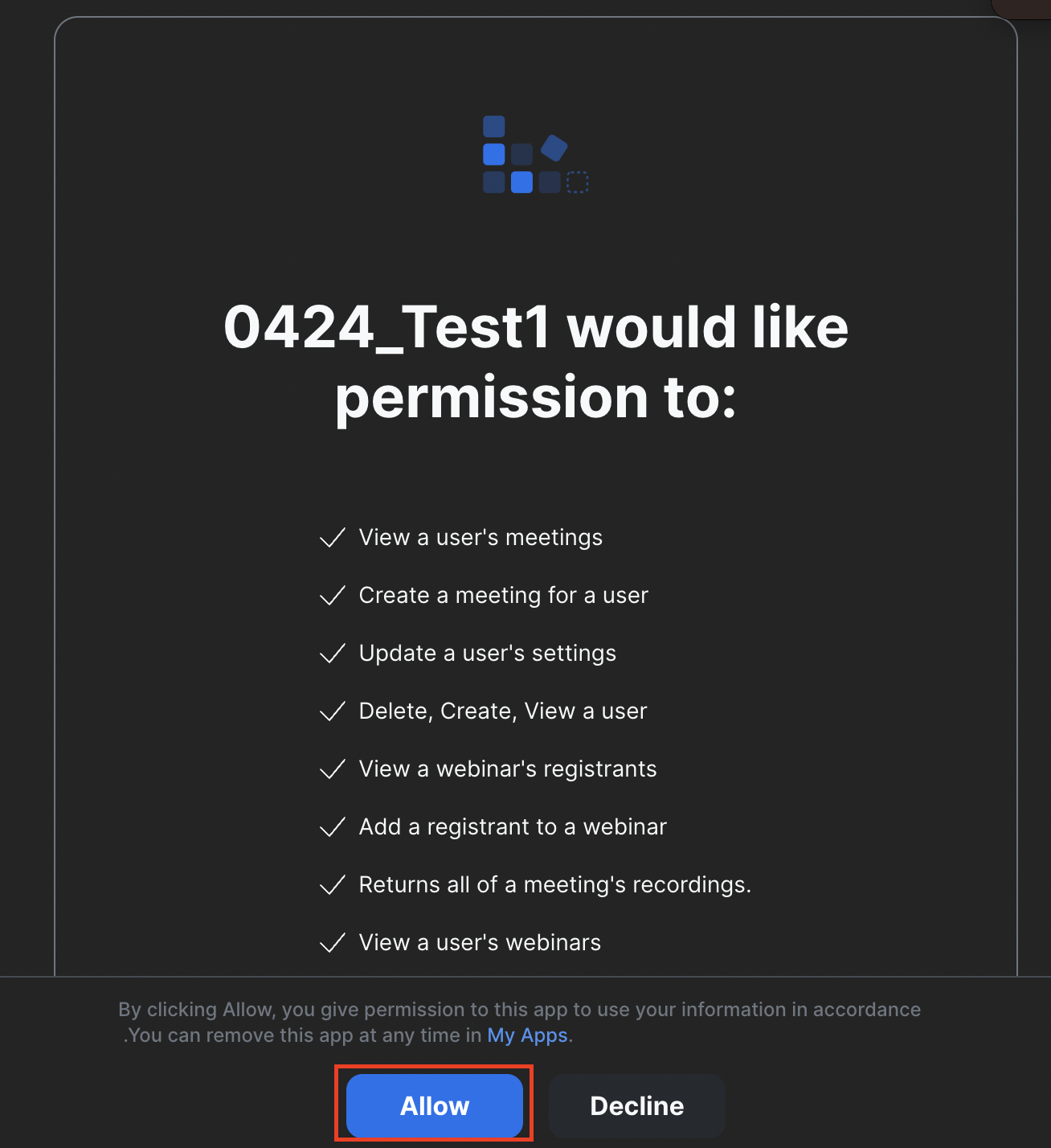 YoomからZoomへのアクセス権限を確認し、「Allow」をクリック。