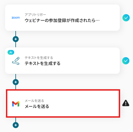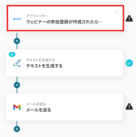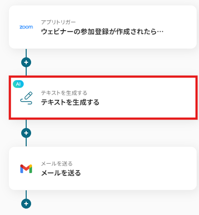 それではここから代表的な例として、Zoomでウェビナーの参加登録が作成された際に、AIが案内文を自動で生成し、Gmailで送信するフローを解説していきます!