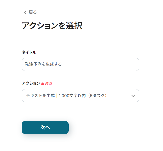 - 指定するプロンプトの文字数に応じて「アクション」をプルダウンから選択。
