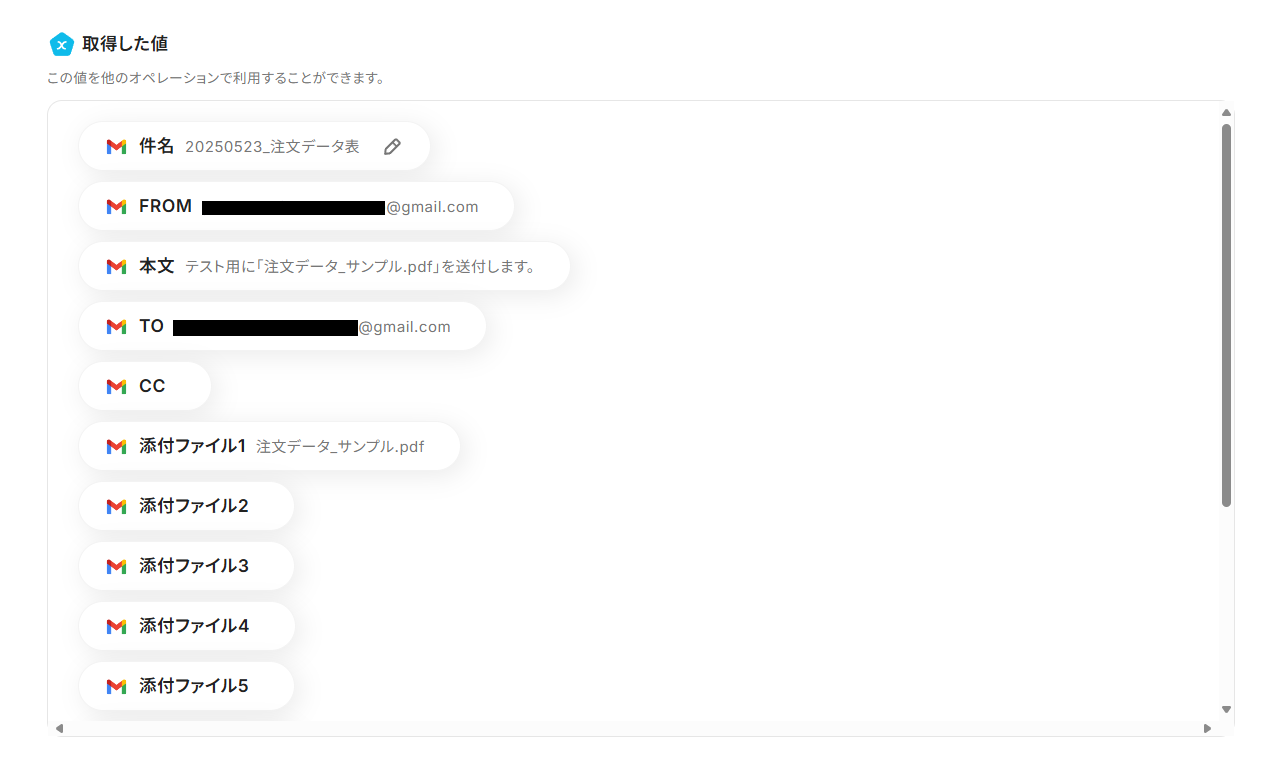 これがステップ3で受信メールから取得した添付ファイルになります。