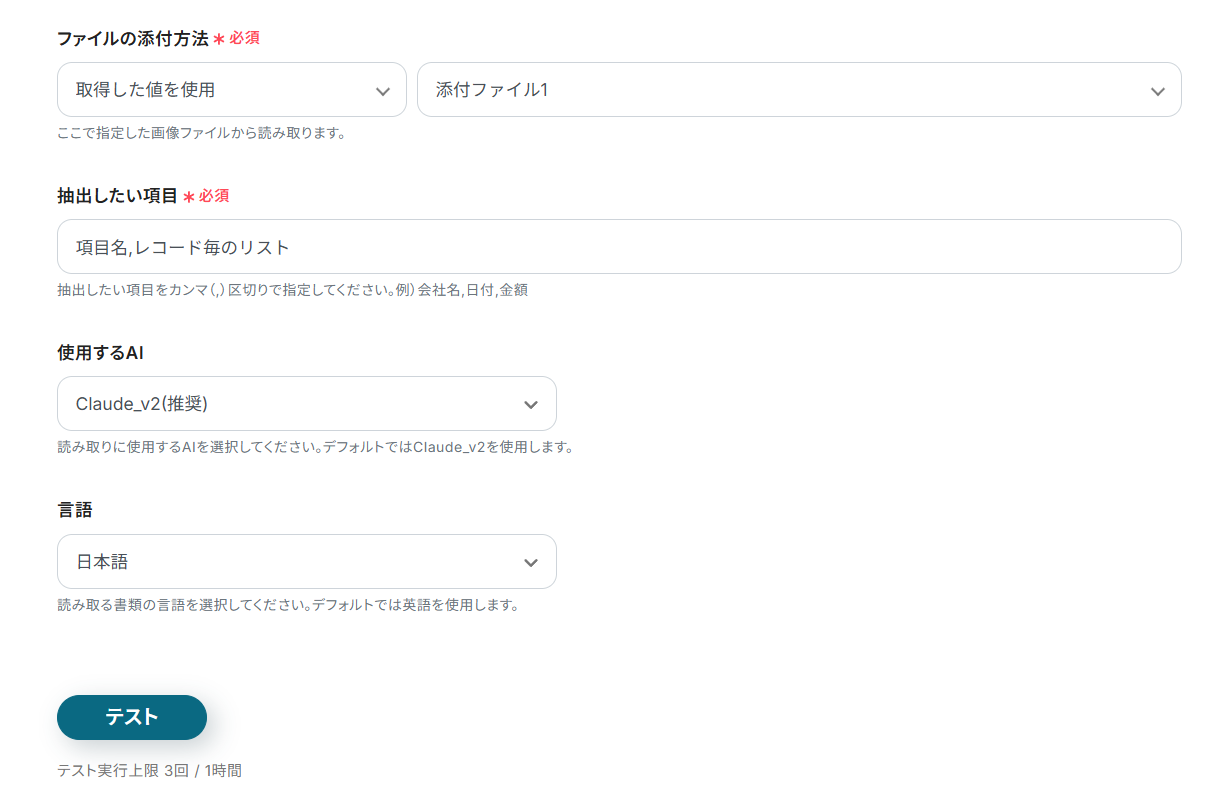 ※ 期待する値が抽出されていない場合には、「使用するAI」を変更して再度お試しください。