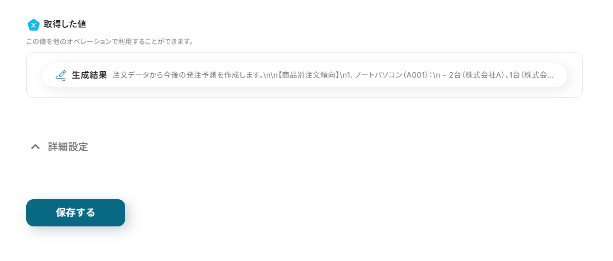 抽出したデータを用いて、AIで発注予測を生成しましょう。