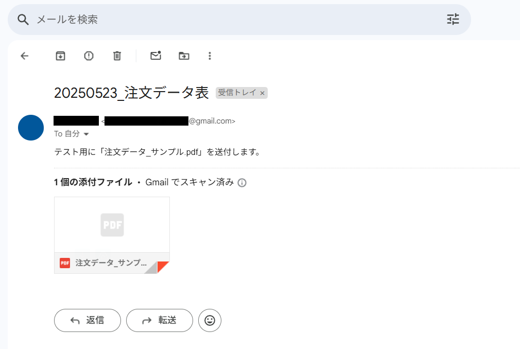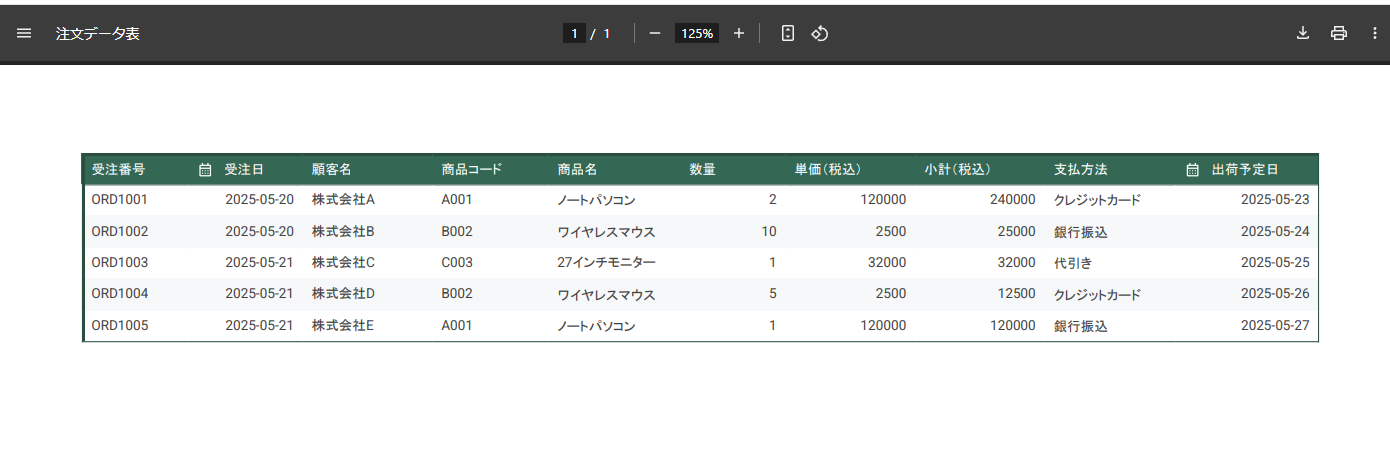 ここでは例として、下図の「注文データ_サンプル.pdf」を使用します。