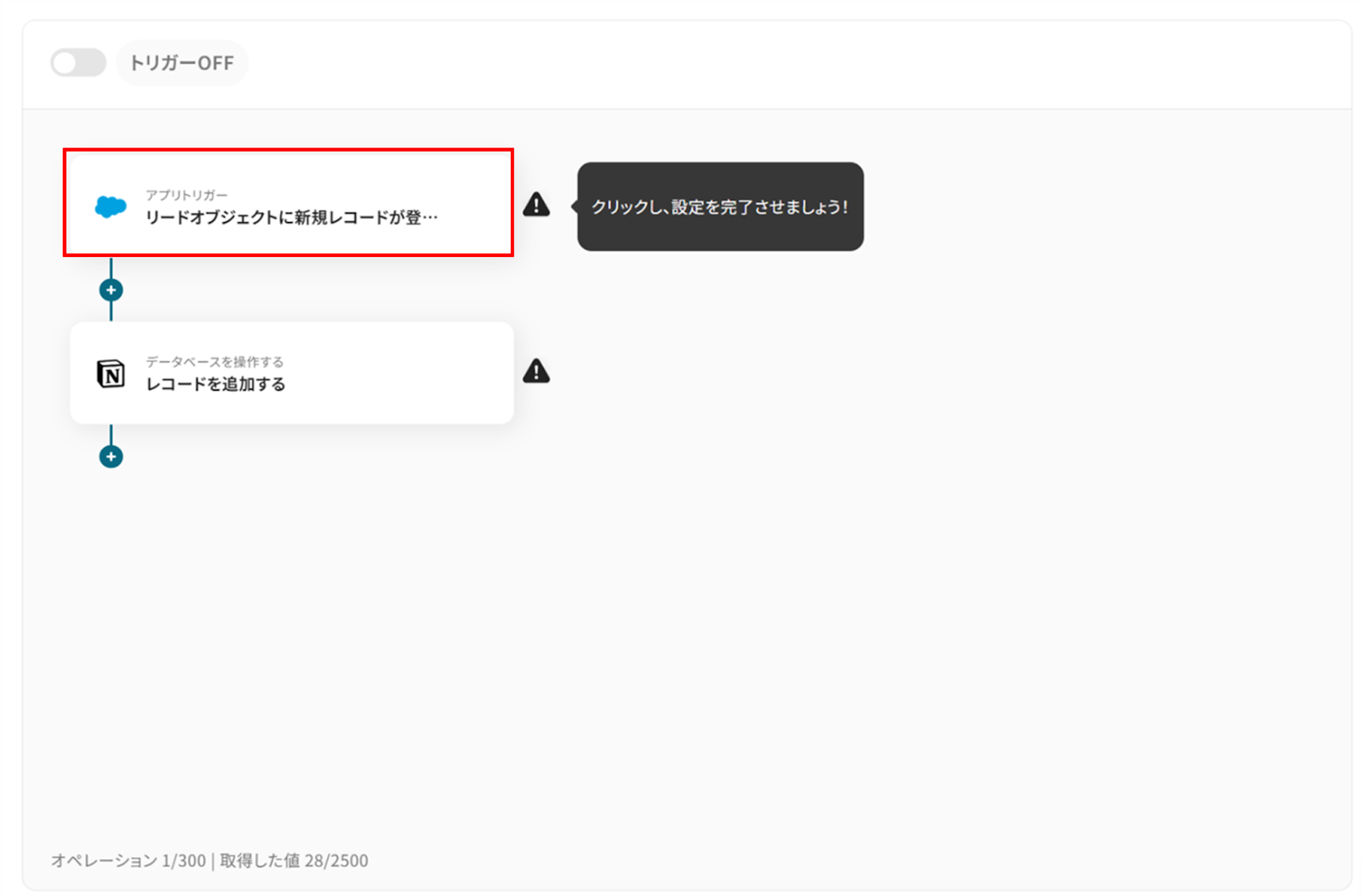 それではここから代表的な例として、Salesforceに新しいリード情報が登録された際に、その情報をNotionのデータベースへ自動で追加するフローを解説していきます!