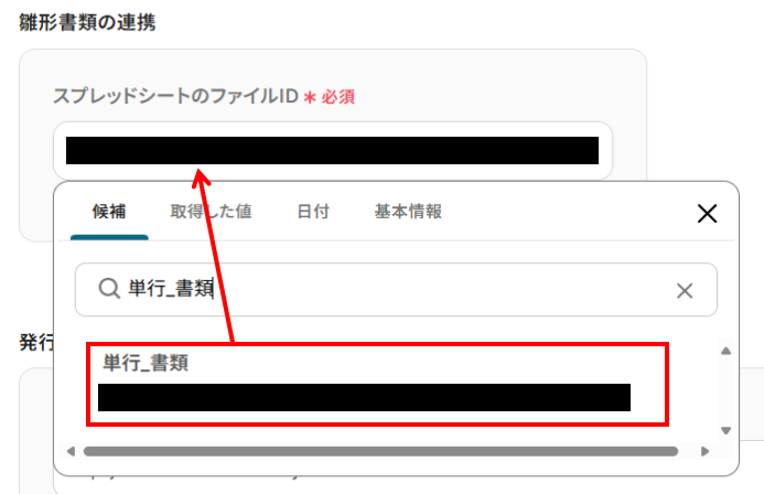 ページを下に進み、「雛形書類の連携」の項目を入力していきましょう。