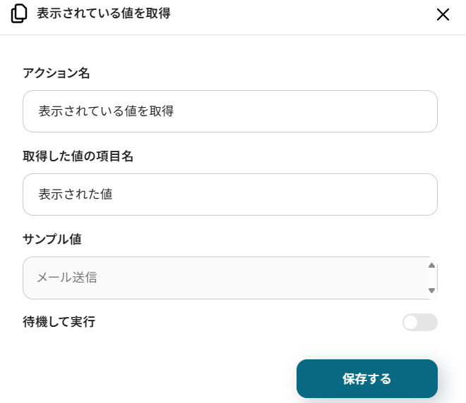 先ほど設定した「取得した値の項目名」で、指定のWebサイトから値が取得できていればOKです。今回は、1つの値のみを取得しましたが、必要に応じてアクションの追加や修正をして希望の値を取得してください。