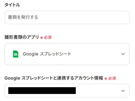 タイトル欄は任意で変更可能です。アカウント情報欄にはステップ1で連携したアカウントの情報が反映されていますので、修正は不要です。