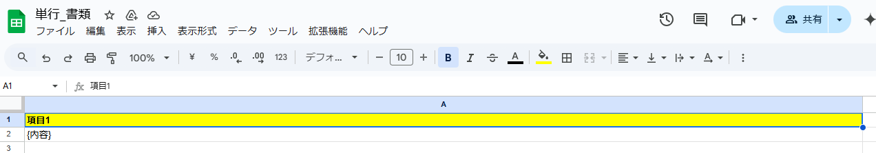 3.Google スプレッドシートで囲った{}の置換対象の文字列を、何に置換えるか設定していきます。