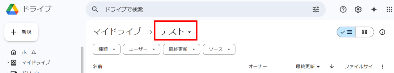 次に、出来上がった書類の格納先を準備するため、Google Driveに格納先となるフォルダを作成してください。今回は下図赤枠のようなフォルダを作成しました!