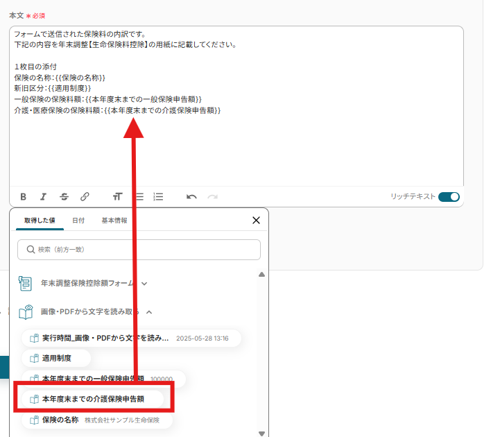 フォームで送信された生命保険料控除証明書をOCRで読み取り、年末調整の情報としてGmailで自動通知する