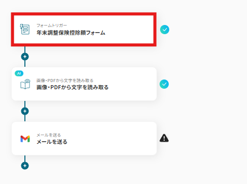 それではここから代表的な例として、フォームで送信された生命保険料控除証明書をOCRで読み取り、年末調整の情報としてGmailで自動通知するフローを解説していきます!