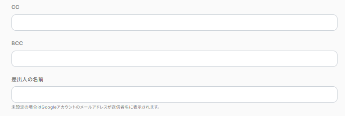以降のCC、BCC、差出人の名前は任意で設定しましょう。