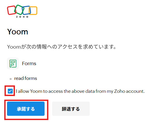 アクセス許可画面で内容を確認し、「承諾する」をクリックしてください。