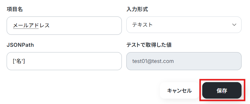 - AirtableのアウトプットはJSONPathから取得可能です。取得方法は「『取得する値』を追加する方法」をご参照ください。