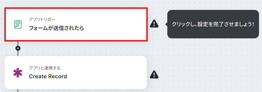 今回は、「Zoho Formsの回答内容をもとにKnackにレコードを追加する」フローを作成していきます!作成の流れは大きく分けて以下です。