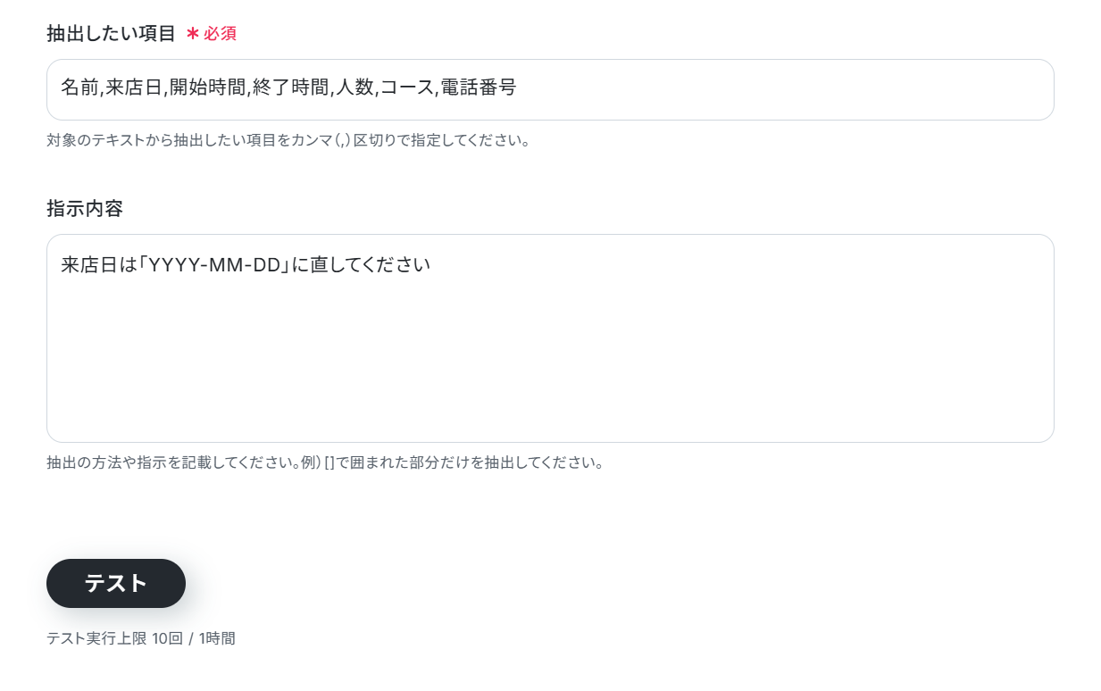 「抽出したい項目」「指示内容」を入力します。
