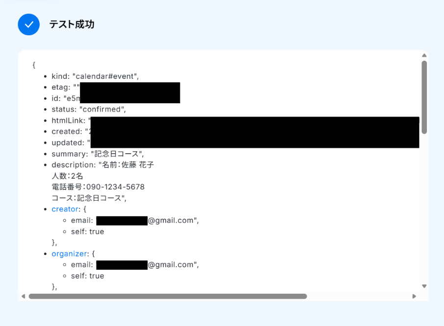 - 予約が可能な場合は、Googleカレンダーの「予定を作成」アクションで、抽出した情報をもとに予定を登録します。
