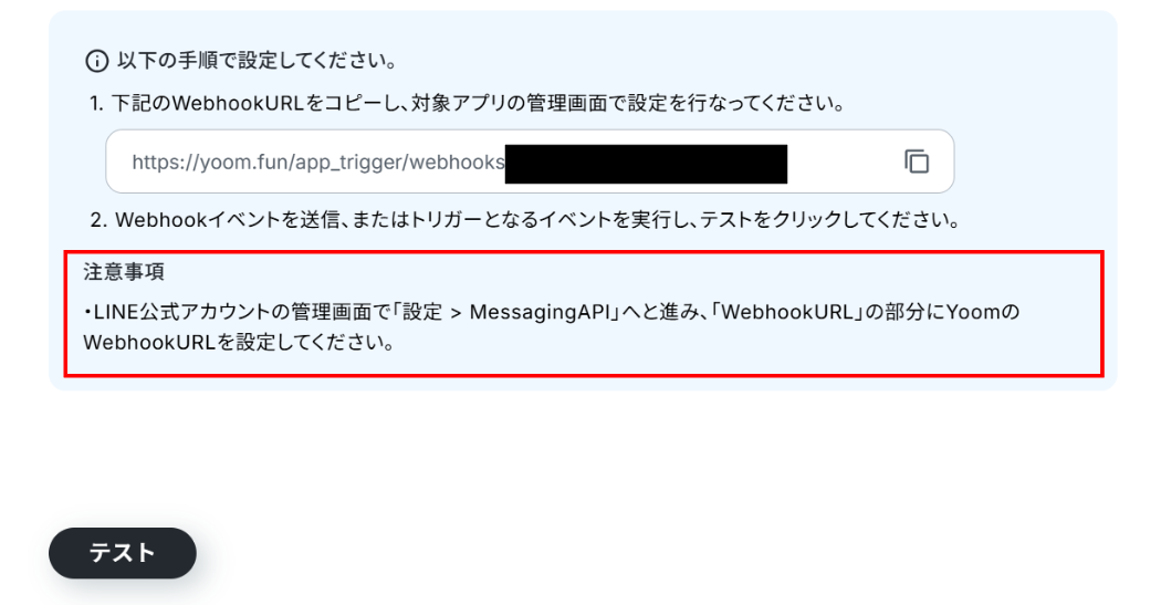Yoomに戻って「テスト」をクリックしましょう。