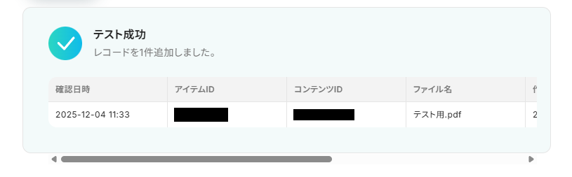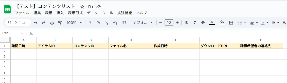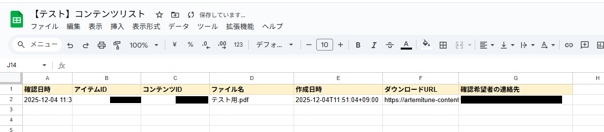 また、実際にレコードが追加されるので、Google スプレッドシートを確認してみましょう。