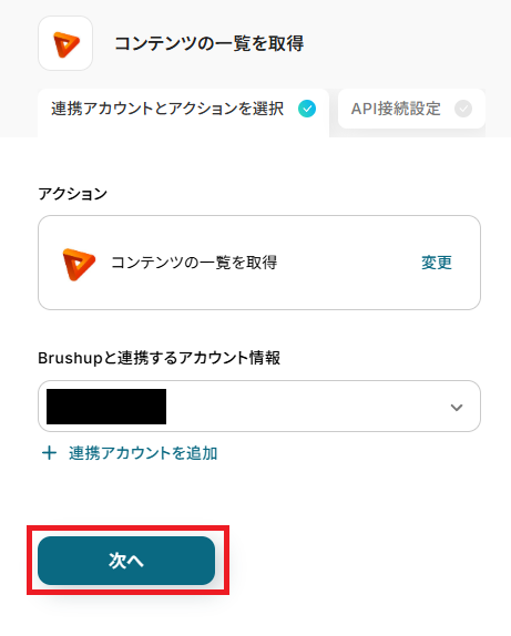 Brushupと連携するアカウントに間違いがないかを確認し、「次へ」をクリックしましょう。