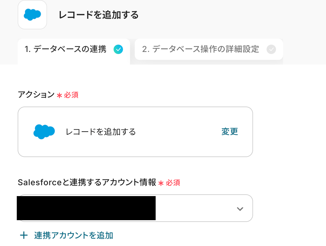 ステップ5:Salesforceのアクションを設定しよう 次に「レコードを追加する」をクリックしてください。