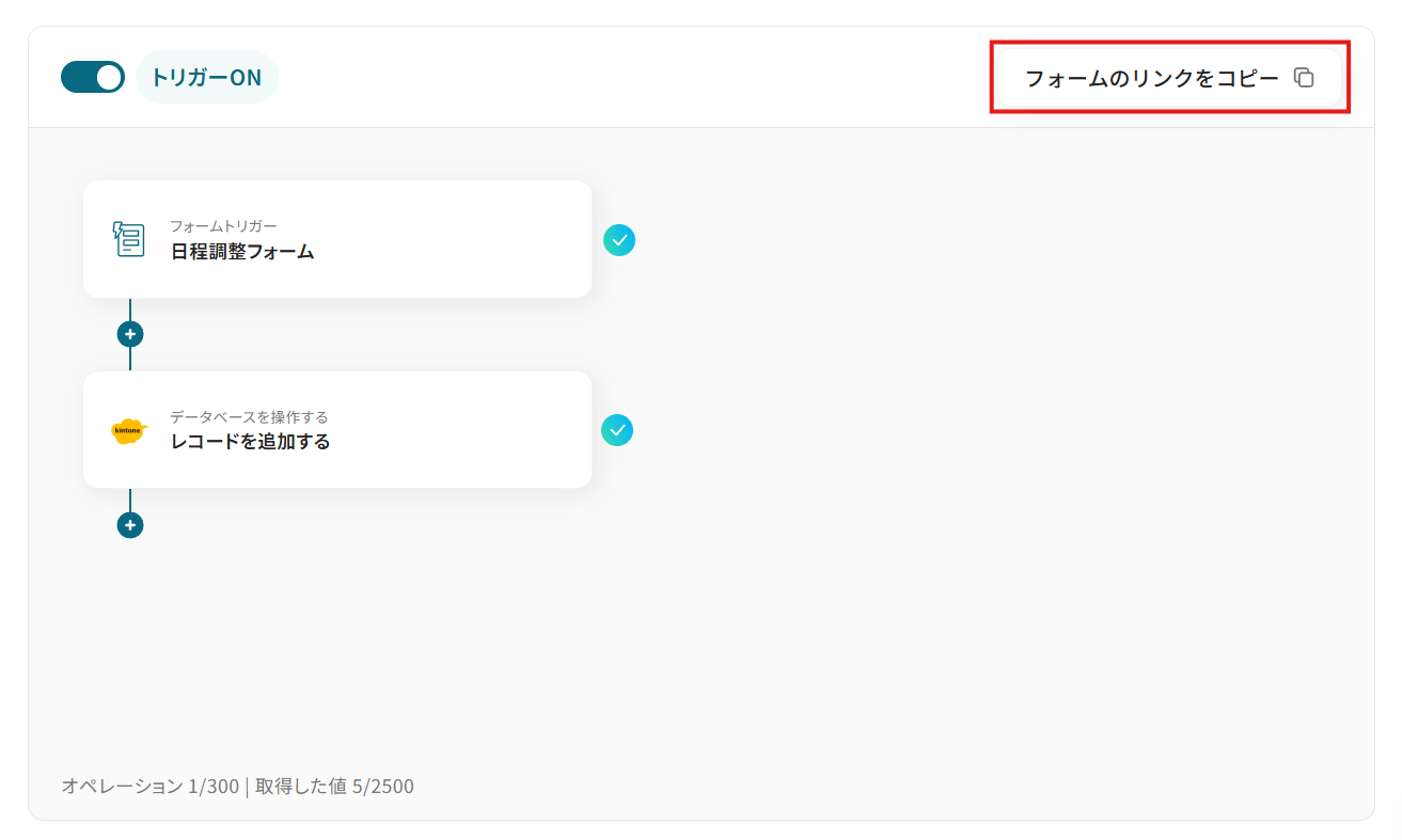 トリガーをONにすると、作成したフォームのリンクがコピーできるようになります。