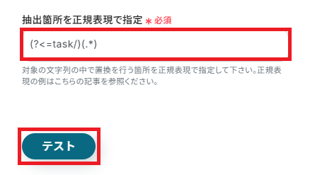 「抽出箇所を正規表現で指定」は、テンプレートで設定してある【(?<=task/)(.*)】を活用しましょう。