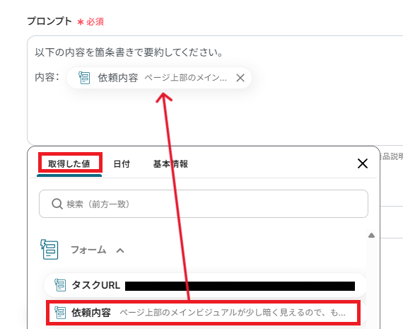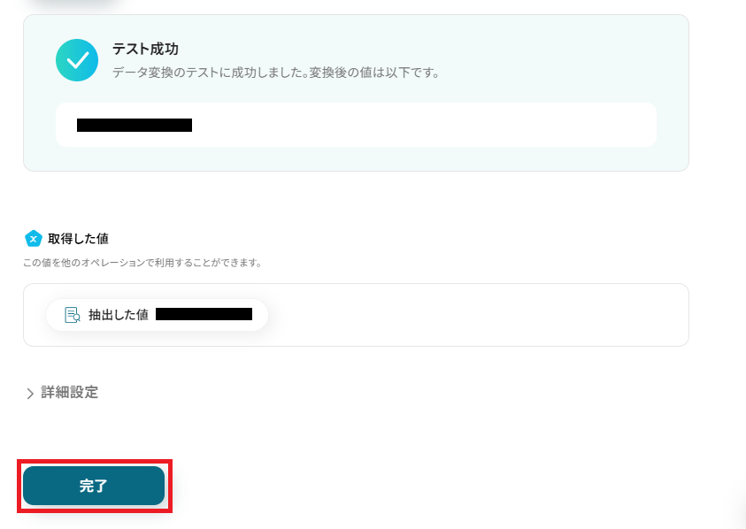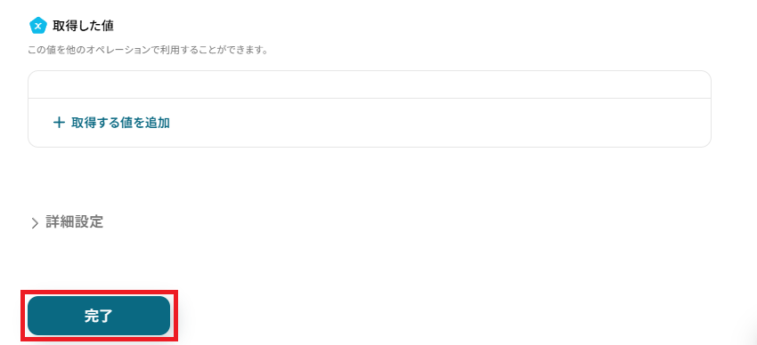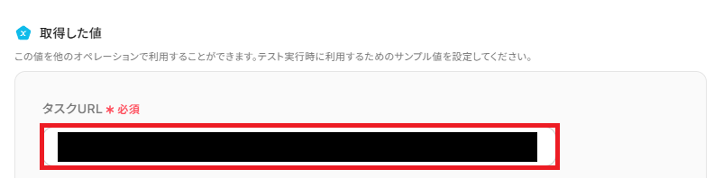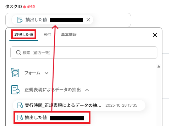 「タスクID」は、取得した値から抽出したIDを設定しましょう。