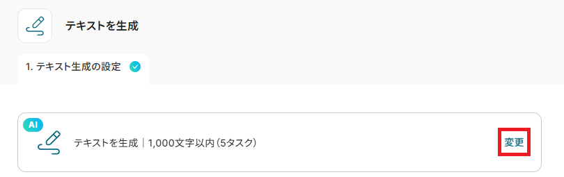 生成するテキストによって消費タスク数が変動するので、変更したい場合は変更から選択可能です。