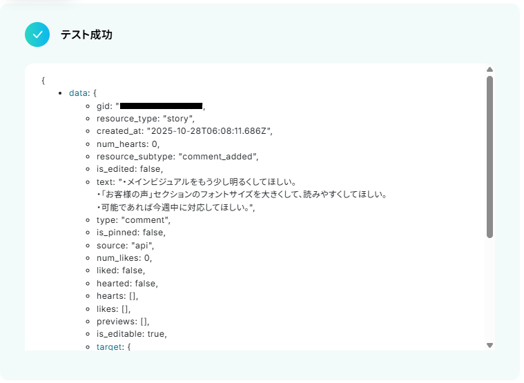 以上が、フォームが送信された際にその内容をAIで要約し、Asanaのタスクにコメントとして自動で追加するフローの連携手順になります!