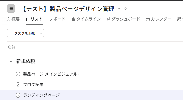 内容は「テスト管理」や「テスト準備」などの、架空情報で問題ありません。