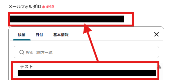 受信するメールフォルダのIDが候補に表示されますので、そちらから入力してください。