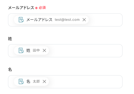 SendGridのコンタクトリストに追加する項目を、取得した値を使って入力していきます。