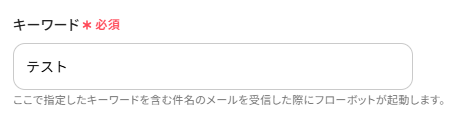 「キーワード」を入力しておくと、指定したキーワードを含んだメールのみに反応します。今回は「テスト」と入力しました。