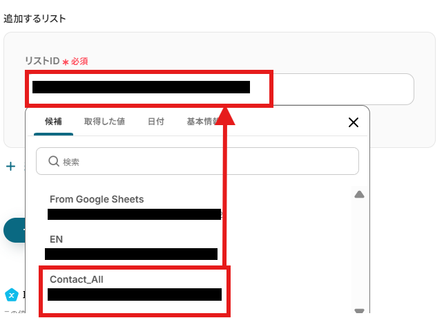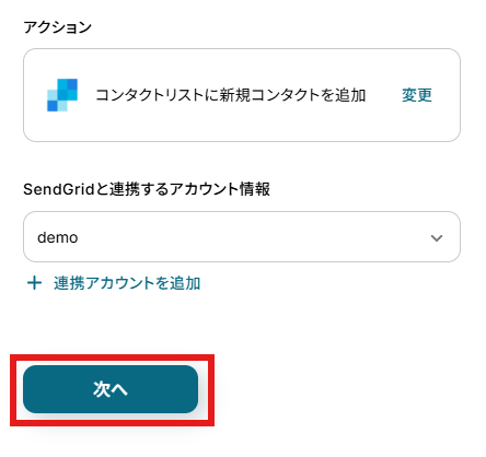 連絡先を追加するSendGridのリストを、候補から選択します。