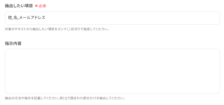 「抽出したい項目」と「指示内容」は今回以下のように入力しました。
