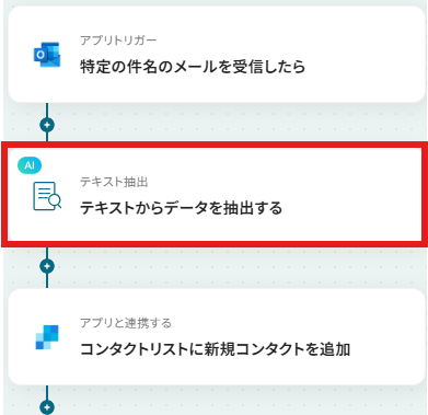 ステップ4:AIでデータを抽出する 次にAIで受信メールのテキストからデータを抽出していきます。 「テキストからデータを抽出する」をクリックしてください。