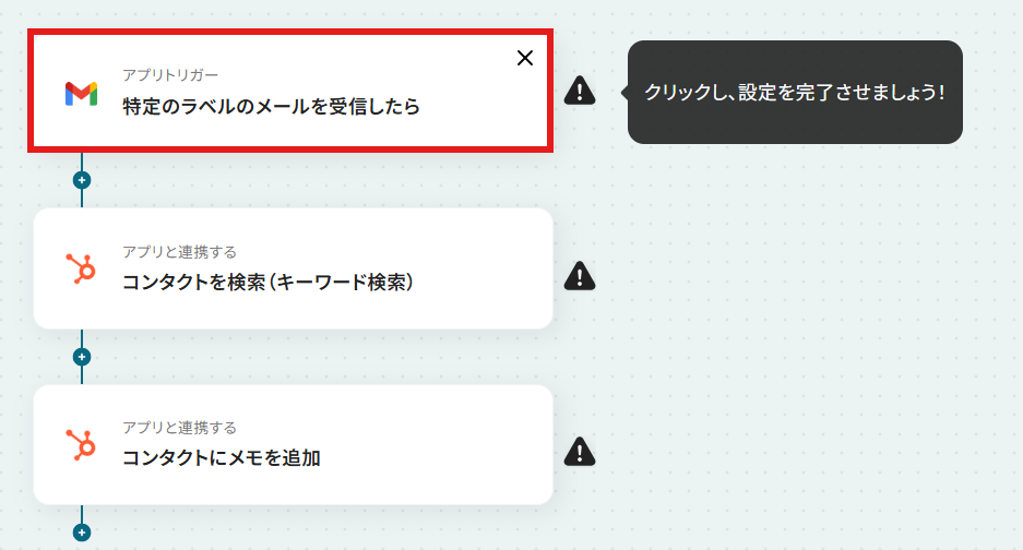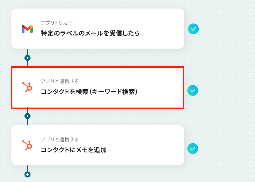 ここから「Gmailで特定メールを受信したら、HubSpotでユーザーを検索して転送する」フローを設定していきます。