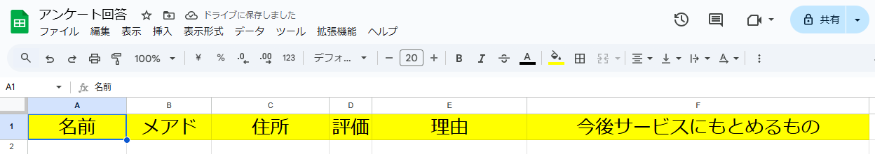 ・連携するGoogleスプレッドシートの設定は自由に変更してご利用ください。