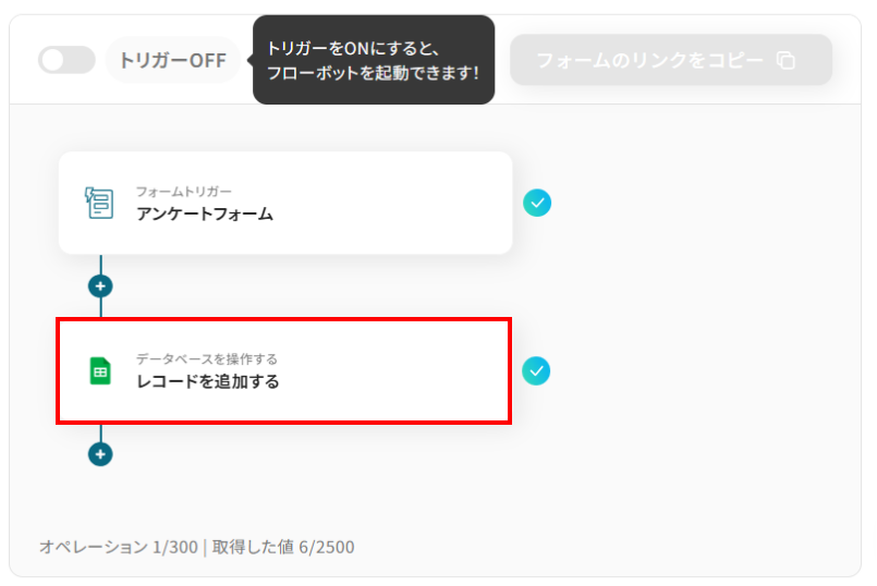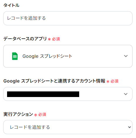 実行アクションは、テンプレート通りに「レコードを追加する」のままで大丈夫です。
