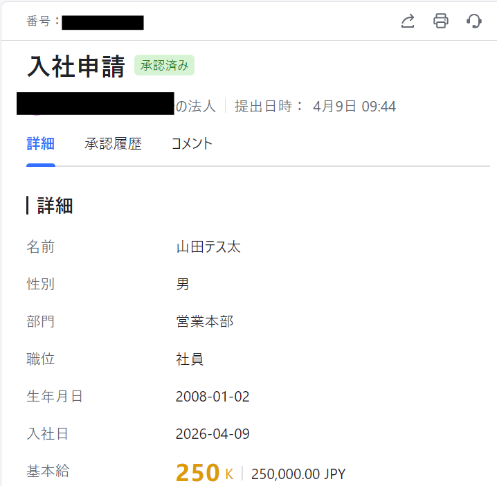 Larkのワークフローが承認されたら、freee人事労務に従業員を登録する
