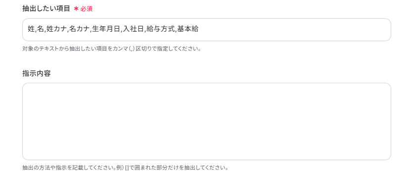 「抽出したい項目」「指示内容」はデフォルトのままです。