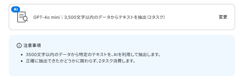 - AI機能でテキストを生成するアクションでは、要約の形式や文字数など、アウトプットしたい内容に応じてプロンプト(AIへの指示)を任意で設定してください。