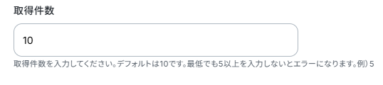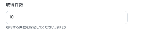 取得件数も画面注釈に沿って入力しましょう。今回は「10」としました。