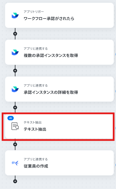 - 続けて、AI機能のオペレーションで、取得した情報から従業員登録に必要な項目を抽出するための指示を作成します。